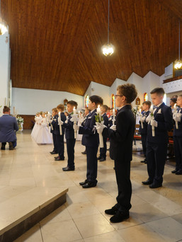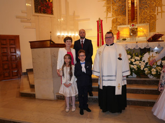 Jacku w dniu Twojej Pierwszej Komunii Świętej życzę Ci obfitości łask bożych. Niech Jezus, który w tym dniu pierwszy raz zagościł w Twoim serduszku, będzie dla Ciebie źródłem siły i radości. Dbaj o to, aby twoje serce pozostało czyste i jasne. Nasz fotograf uwiecznił Wasze najlepsze chwile podczas tej wspaniałej uroczystości.